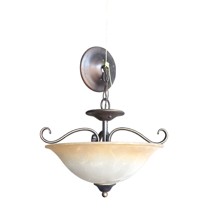 Esta lámpara colgante de estilo clásico es una excelente opción para quienes buscan una iluminación elegante y funcional con un diseño atemporal. Su estructura metálica en tono oscuro presenta líneas curvas sutiles que aportan un toque decorativo sin sobrecargar el ambiente.